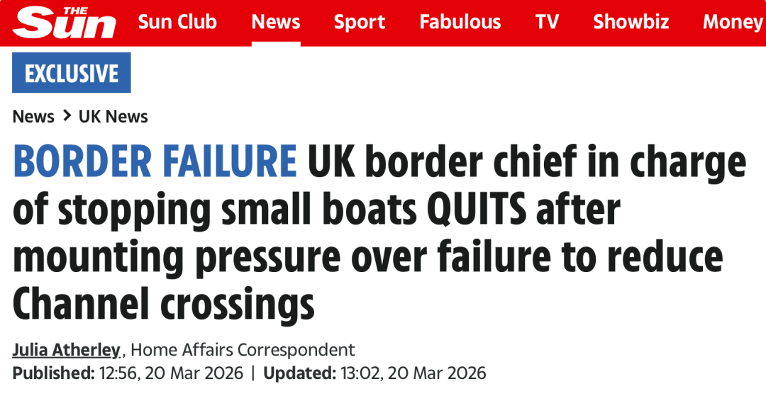 《太阳报》独家获悉,英国边境安全指挥官Martin Hewitt将在本月底卸任,他因未能减少跨海峡偷渡人数而面临越来越大的压力,因此选择辞职。