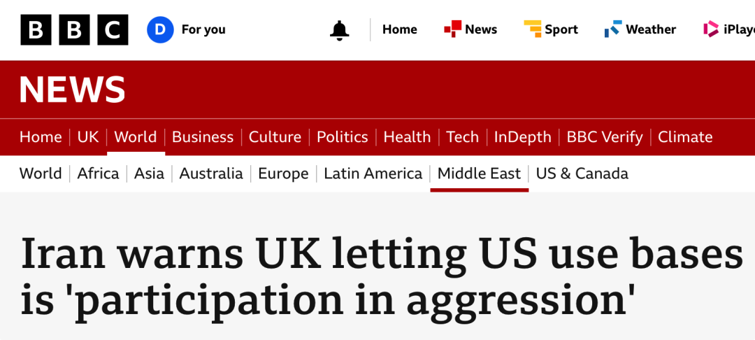 ● 伊朗警告英国:为美国提供军事基地,将被视为“参与侵略”伊朗