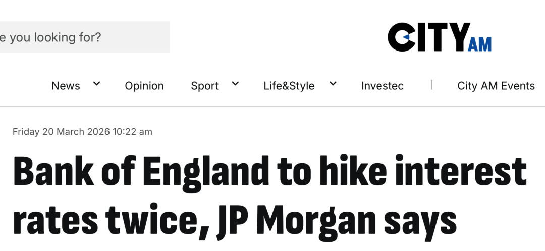 JP摩根则预测,英国央行很可能在4月底的下次会议上宣布加息,在今年至少加息两次。该机构认为,到7月份,英国基础利率将为4.25%,高于目前3.75%的水平;英国通胀率要到2027年春季才会达到2%,而基础利率要在一年后才会回落至3.75%。